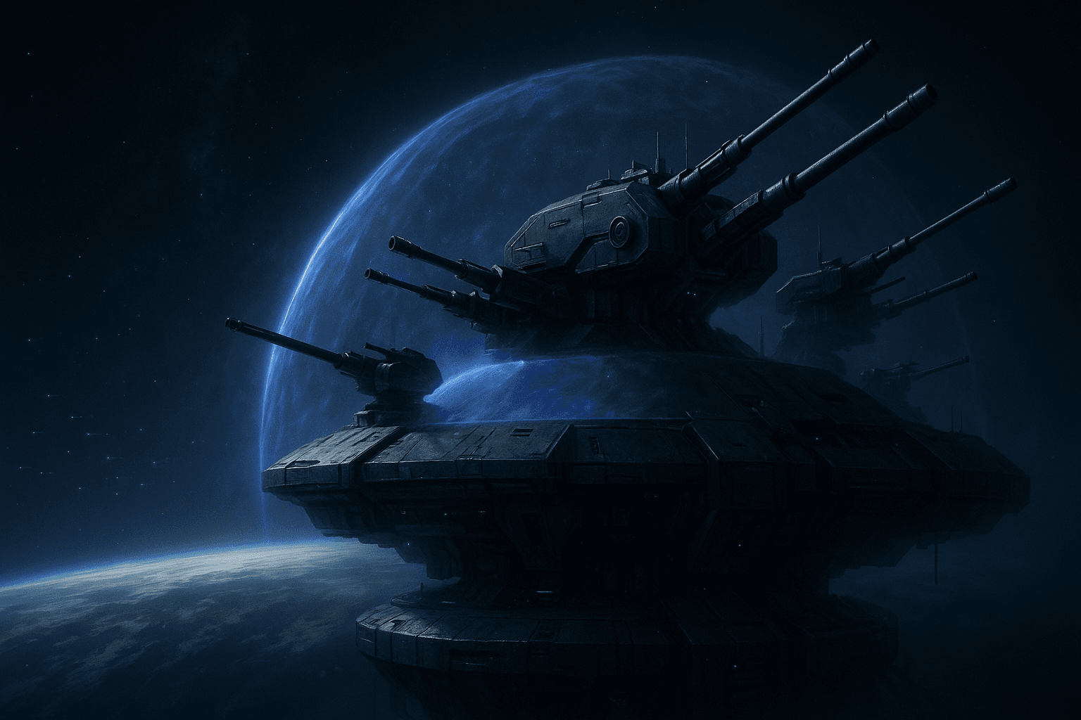 Heavily armored geosynchronous weapons station mounting heavy-caliber railguns and missile batteries. Capable of threatening even capital-class warships in a sustained engagement.
