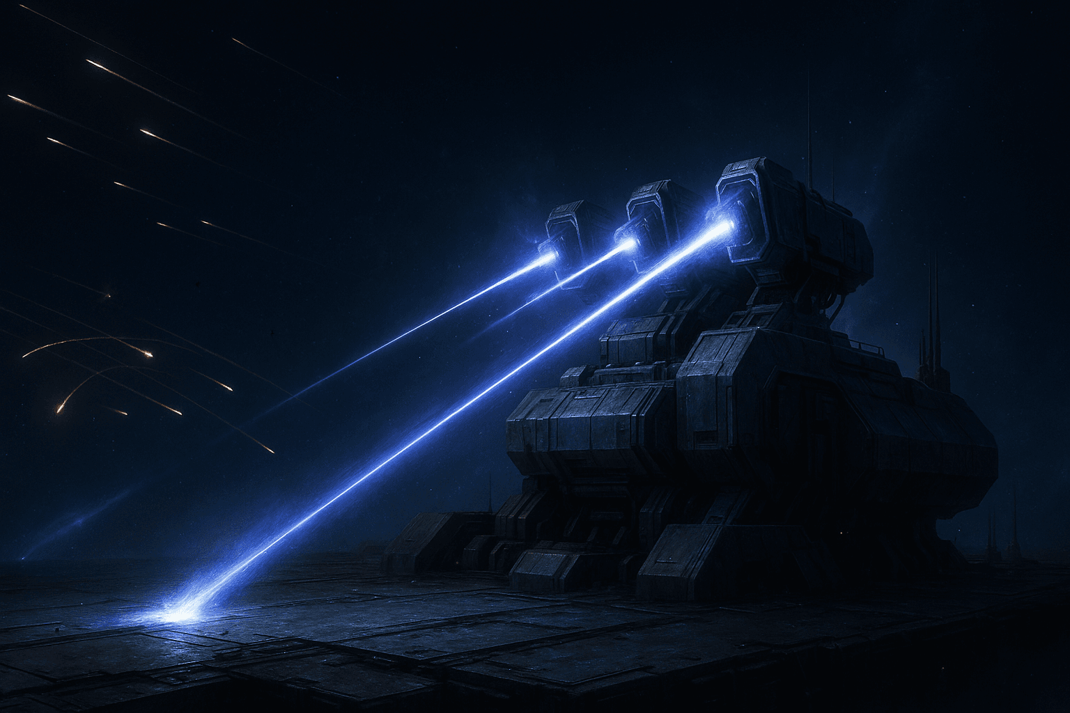 Area-burst anti-ordnance batteries that fill approach corridors with fragmentation clouds, neutralising mass missile volleys and bomber waves.